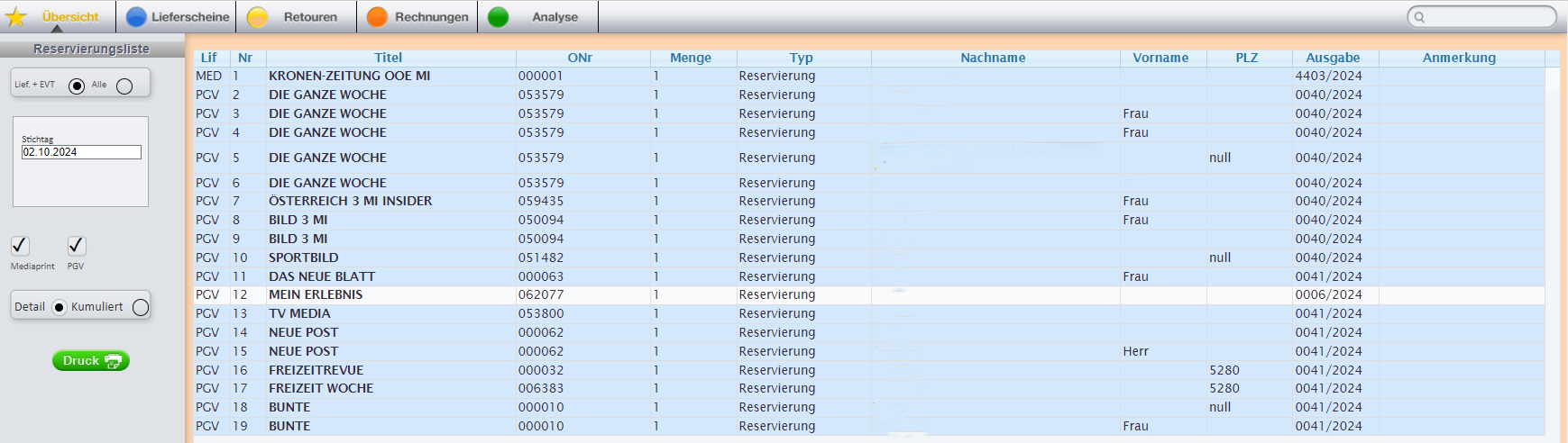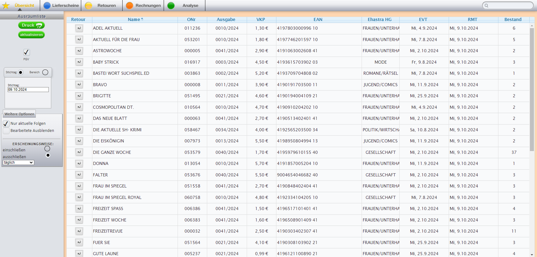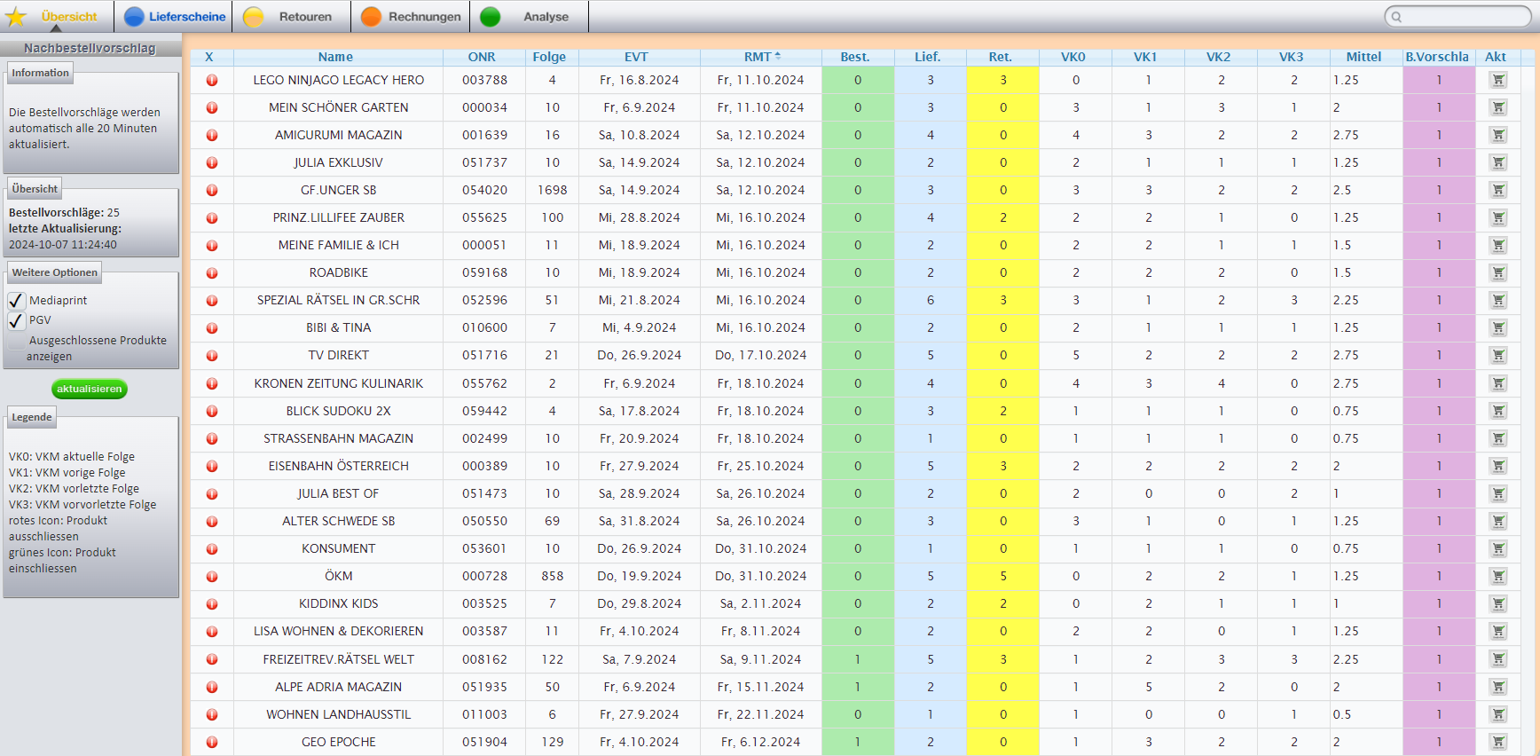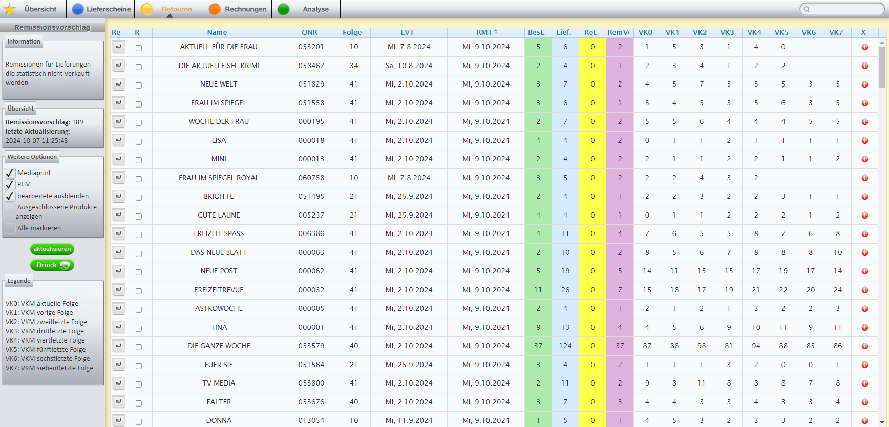 Zu wenig Platz im Geschäft? Überbelieferung? Der Retourenvorschlag zeigt an, welche Zeitschriften Sie vorzeitig retournieren könnten.